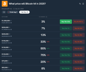 Prediction market data shows traders are wagering millions on the price of Bitcoin reaching levels above $120,000 in 2025. On…
